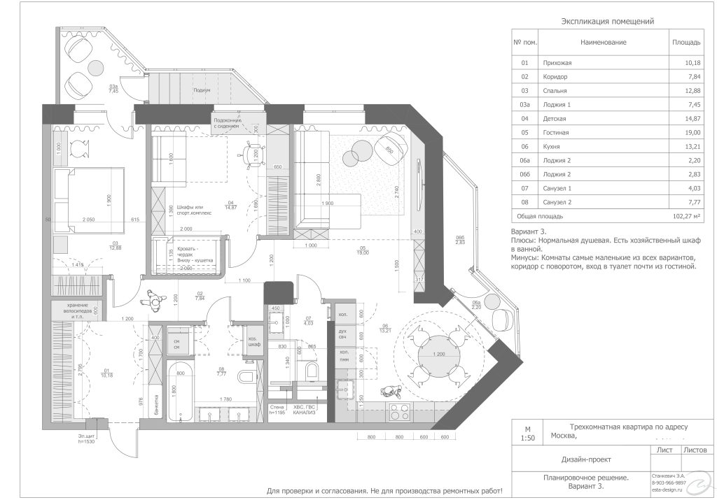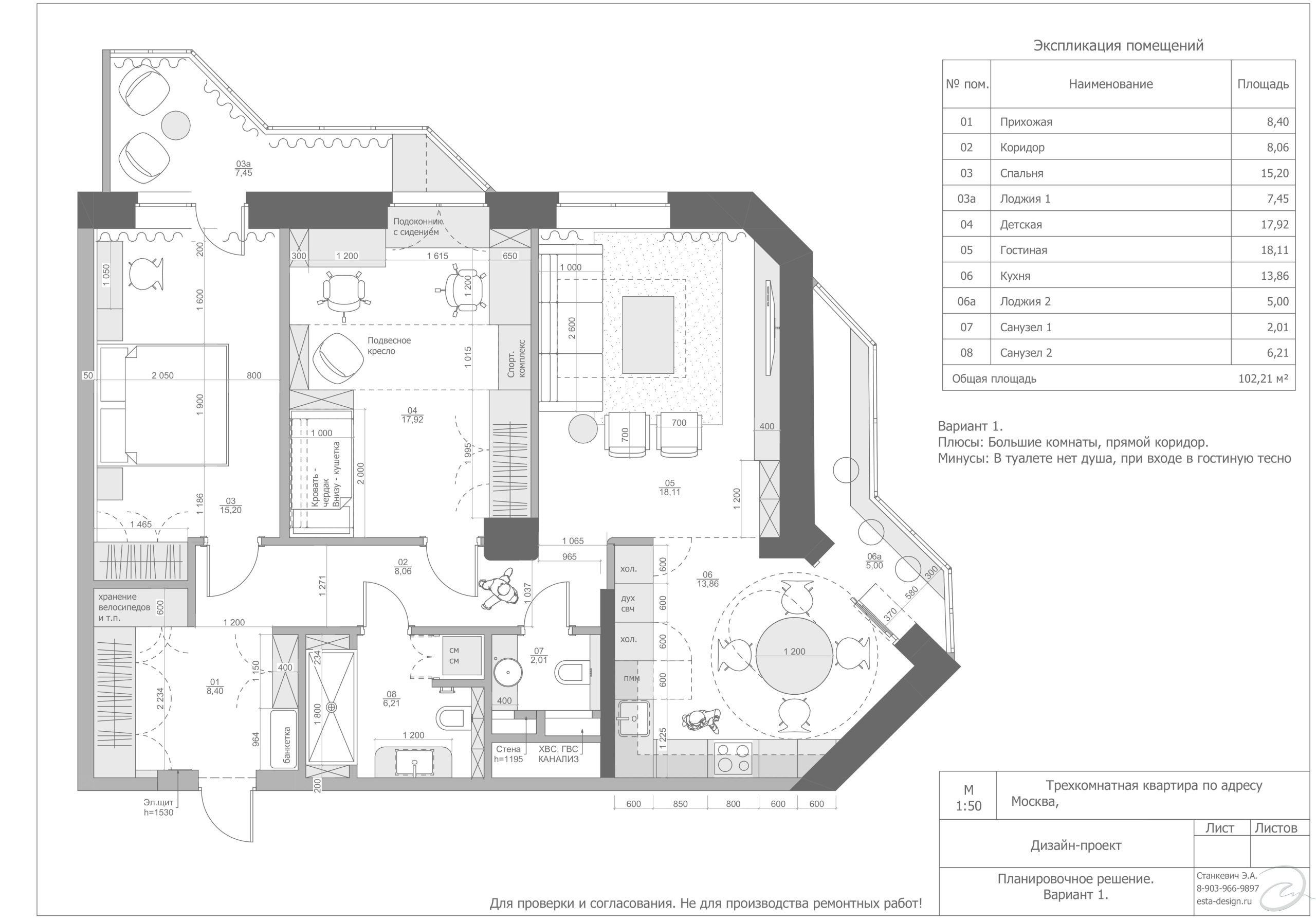 Мы с Вами обсудим эти варианты, и любой из них может быть доработан с учетом всех Ваших пожеланий. Количество поправок, вносимых в планировочное решение, я в разумных пределах не ограничиваю, важно, чтобы Вы были полностью уверены в том, что утвержденный вариант — это именно то, что Вам нужно. Обычно бывает достаточно 2-4 кругов правок.