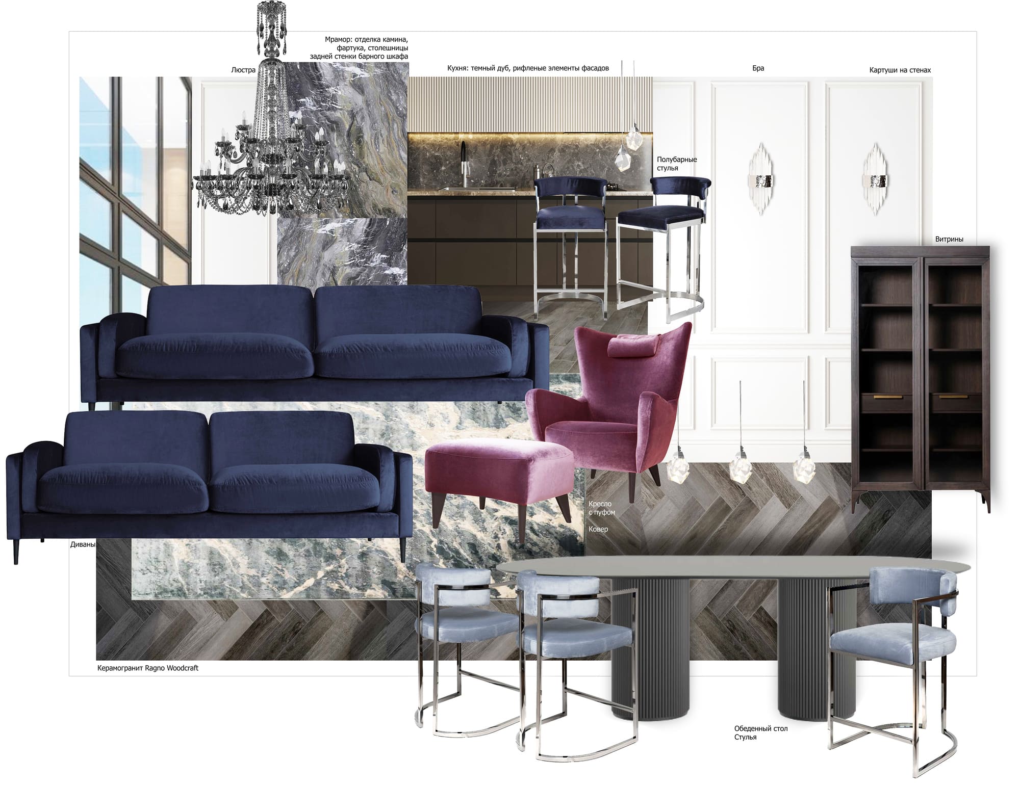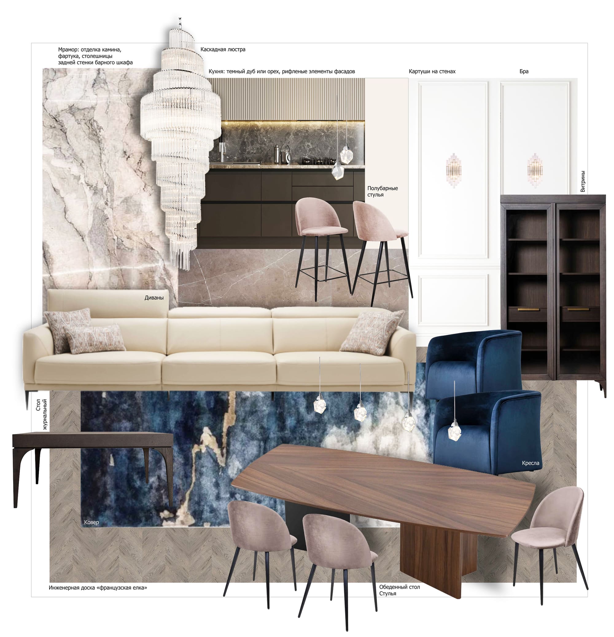 Подбор основных стилеобразующих элементов интерьера. Коллажи.