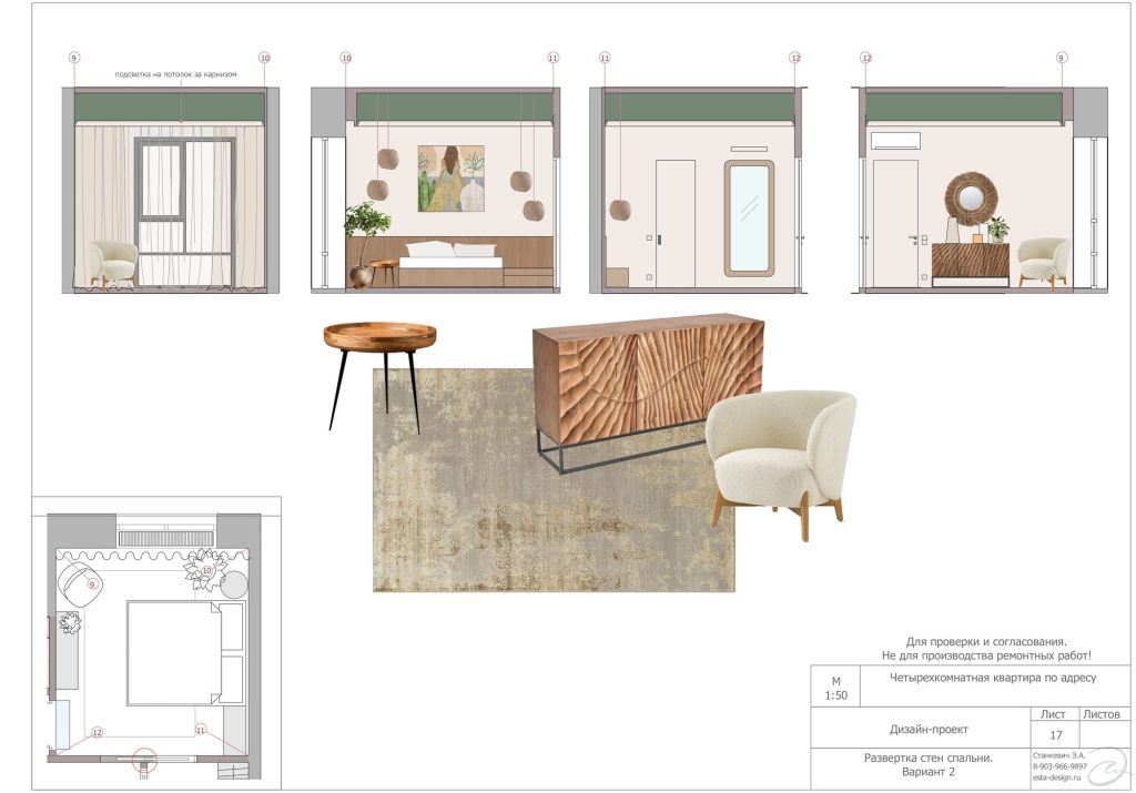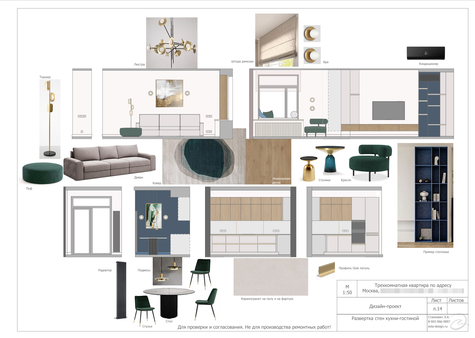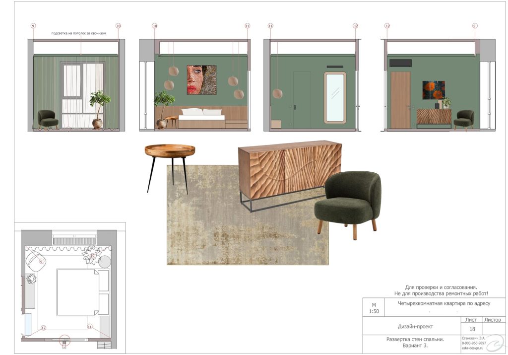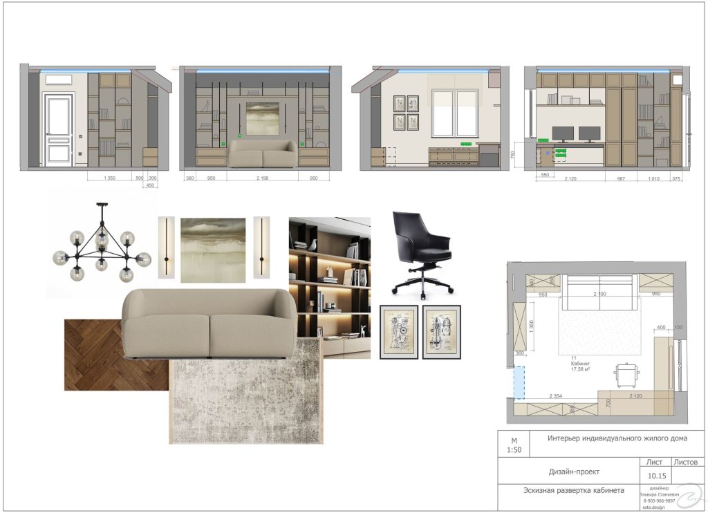 На основе предварительного ТЗ, а также утвержденного планировочного решения, я предлагаю концепции каждого помещения в виде коллажей и (или) эскизных разверток.